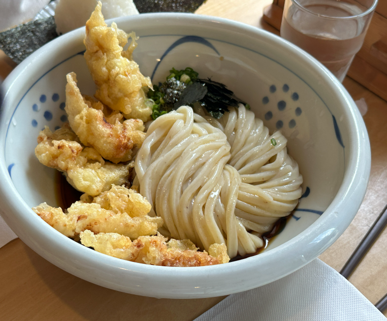 바삭하게 튀겨낸 텐푸라와 함께 제공되는 텐푸라 우동은 신선한 해산물과 채소로 만든 텐푸라가 특징입니다. 고소한 텐푸라와 쫄깃한 우동의 조화가 훌륭합니다.